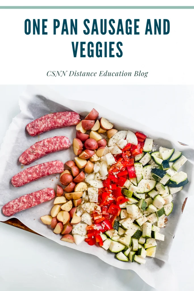 Both of my kids love sausages so this easy dinner is a big hit in my house. I love how easy it is, and the best part is that there is hardly any clean up. One of the challenges that comes with home cooking and healthy eating is the amount of dishes, so any time I can come up with a meal idea that uses minimal pans and dishes I get excited!